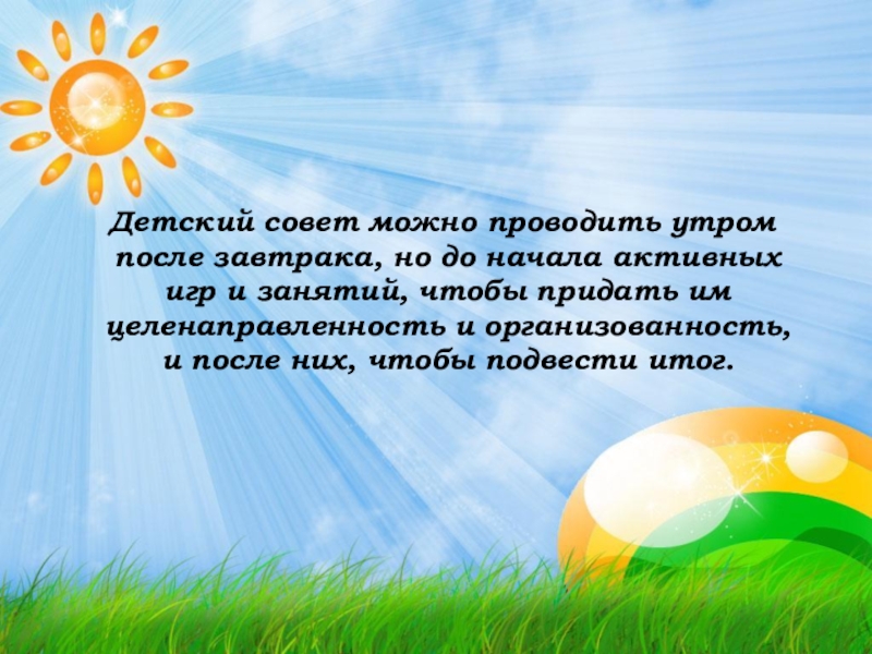 Слайд 9Детский совет можно проводить утром