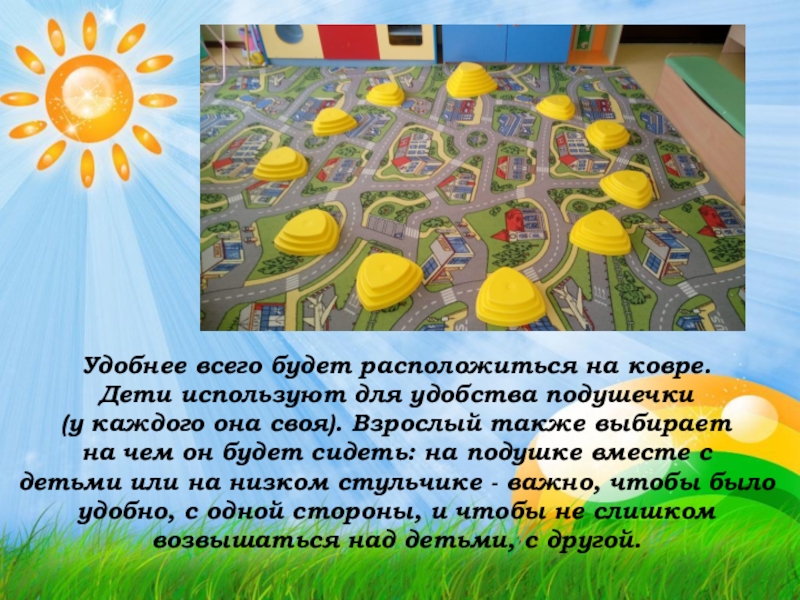 Слайд 6Удобнее всего будет расположиться на ковре.