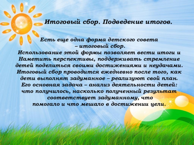 Слайд 14Итоговый сбор. Подведение итогов.