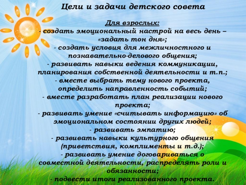 Слайд 10Цели и задачи детского совета