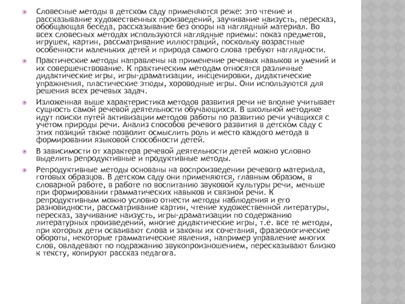 Слайд 9Словесные методы в детском саду применяются реже: это чтение и рассказывание