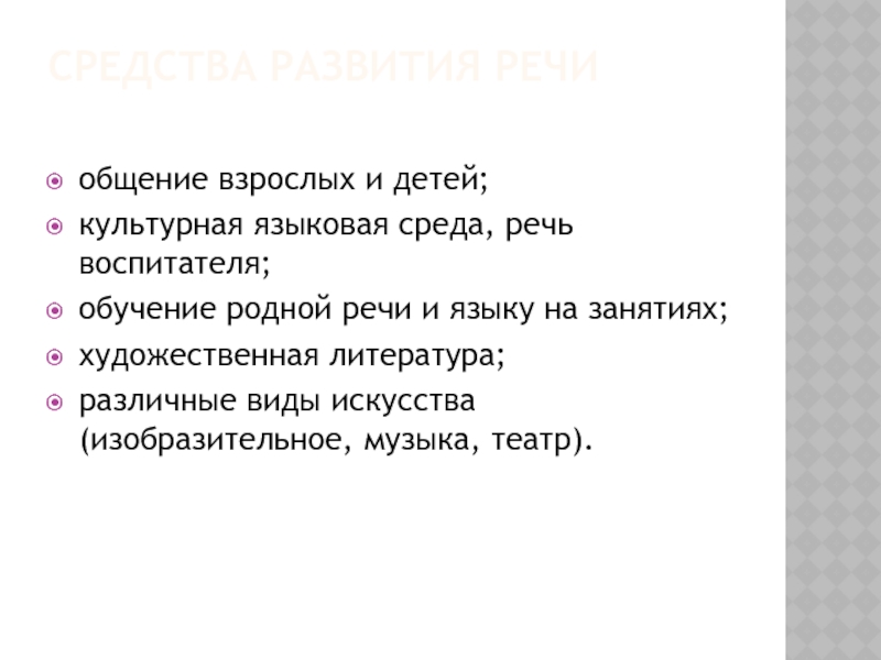 Методы и приемы можно охарактеризовать с разных точек зрения (в зависимости от используемых средств, характера познавательной и речевой деятельности детей, раздела речевой работы).