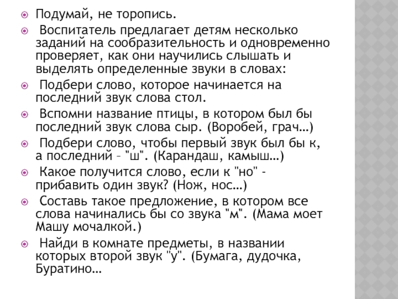 одновременно проверяет, как они научились слышать и выделять определенные звуки в словах:
