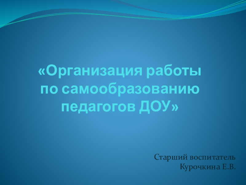 «Организация работы по самообразованию  педагогов ДОУ» Старший воспитательКурочкина Е.В.