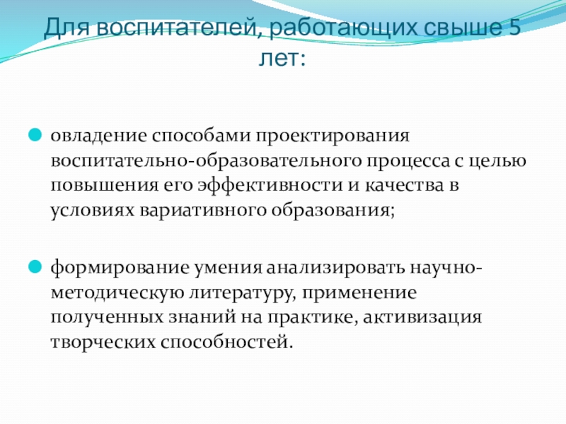 Слайд 4Для воспитателей, работающих свыше 5 лет:
