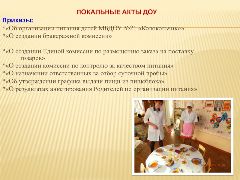 *«Об организации питания детей МБДОУ №21 «Колокольчик»»