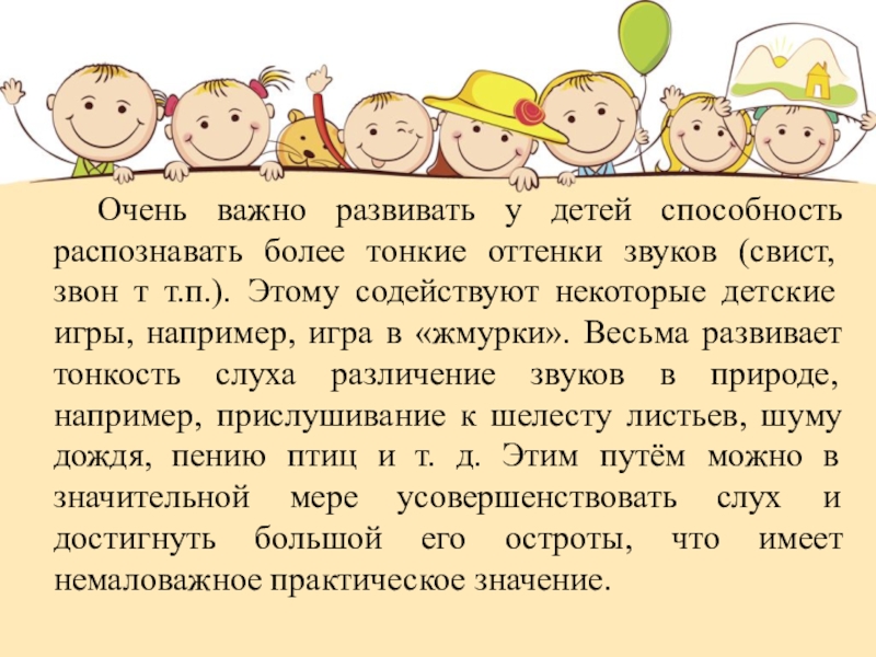 Слайд 23 Очень важно развивать у детей способность распознавать более тонкие оттенки звуков