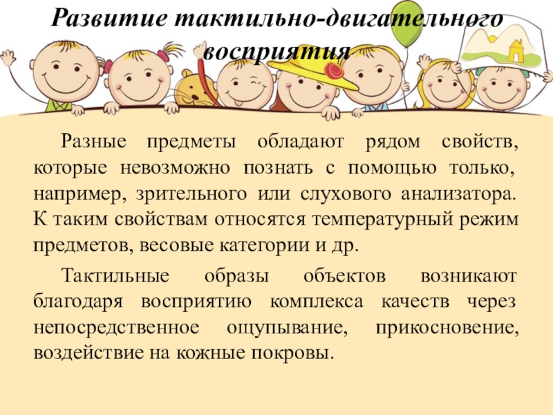 Слайд 13Развитие тактильно-двигательного восприятия