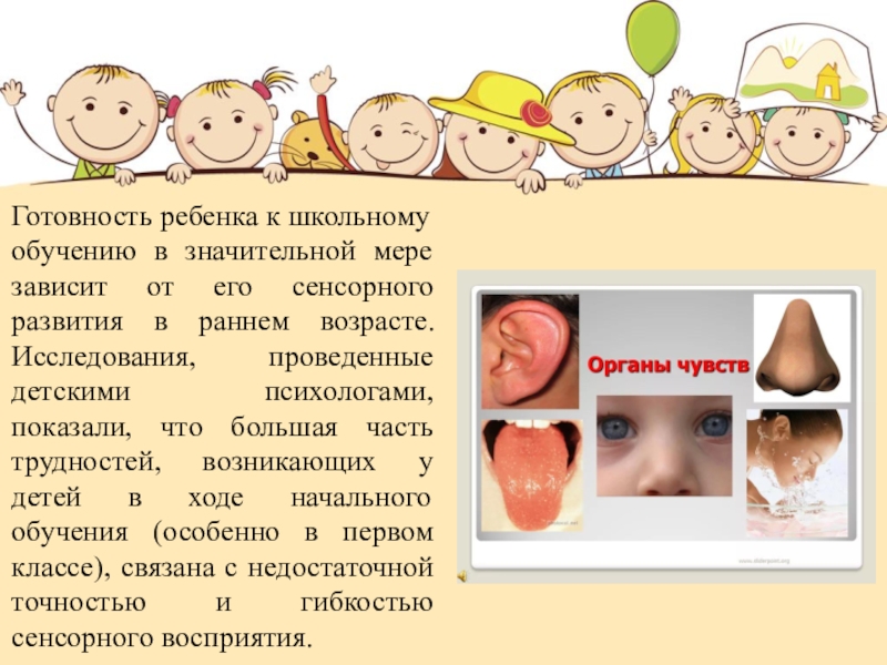 Любая информация поступает к ребенку через органы чувств: глаза, уши,