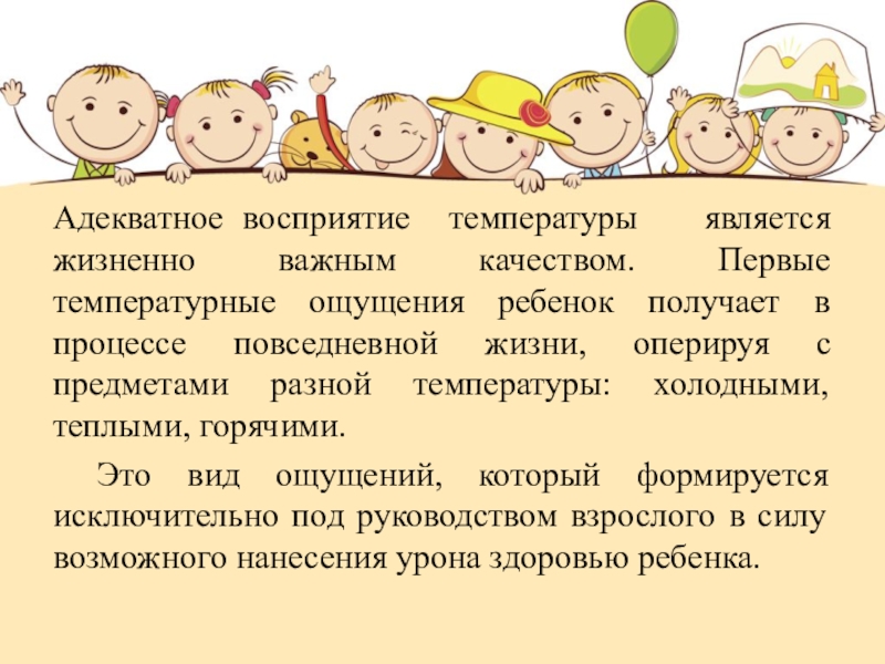 Слайд 15Адекватное восприятие температуры является жизненно важным качеством. Первые температурные ощущения