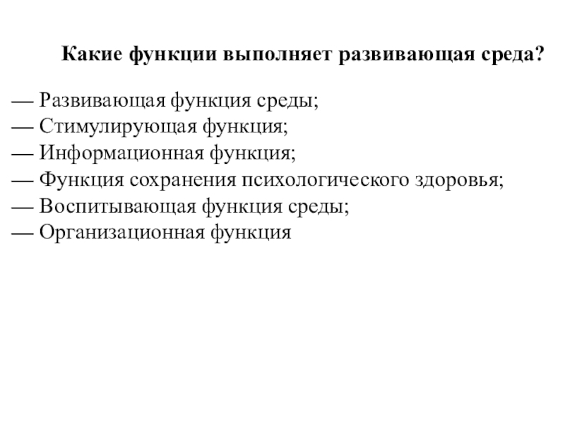 Слайд 11Какие функции выполняет развивающая среда?