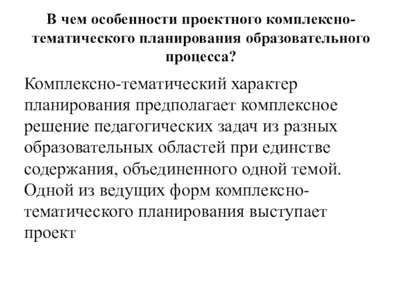 Слайд 2В чем особенности проектного комплексно-тематического планирования образовательного процесса?