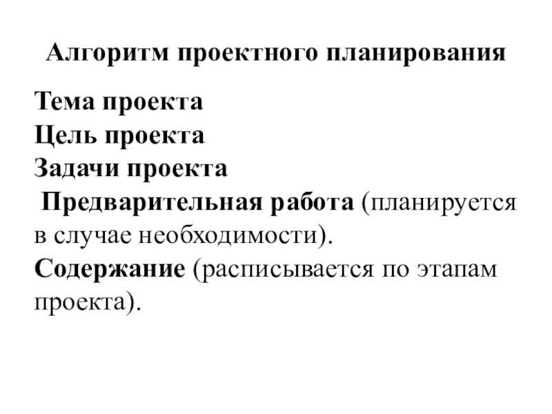 Слайд 4Алгоритм проектного планирования