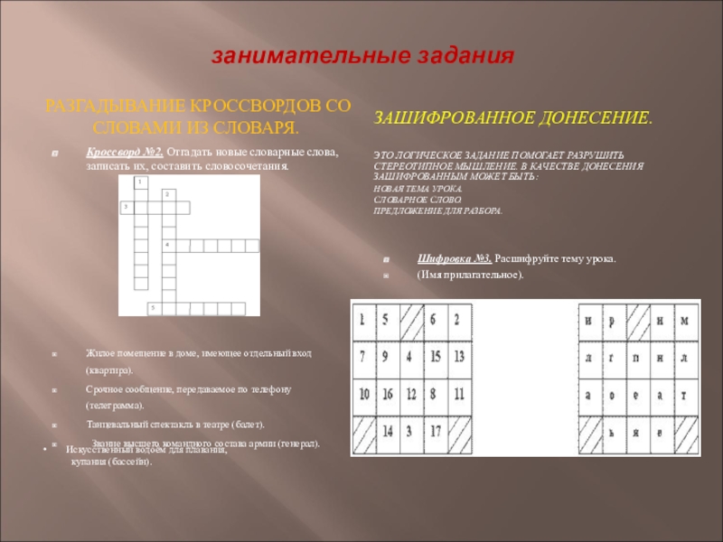 Кроссворд №2. Отгадать новые словарные слова, записать их, составить словосочетания.