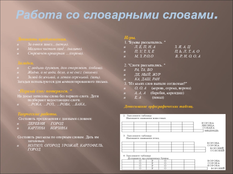 Дописывание орфографических таблиц.