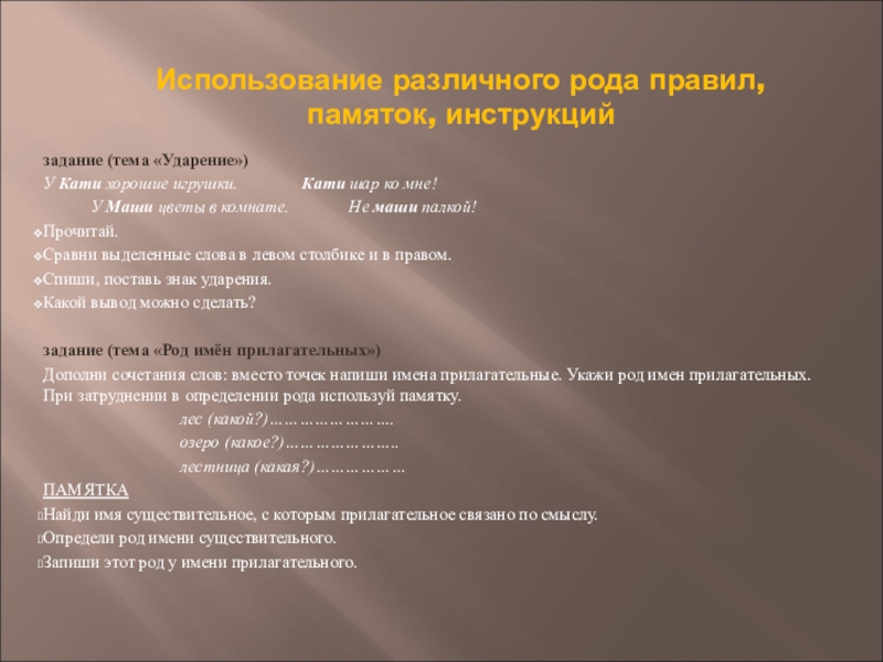разнообразие видов упражнений , заданий и игр, направленных на самостоятельное решение обучающимися задач