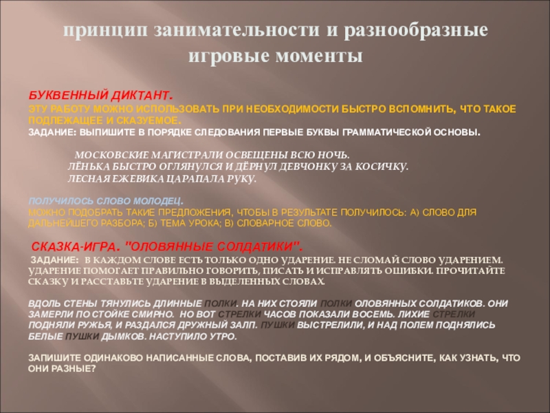 принцип занимательности и разнообразные игровые моменты