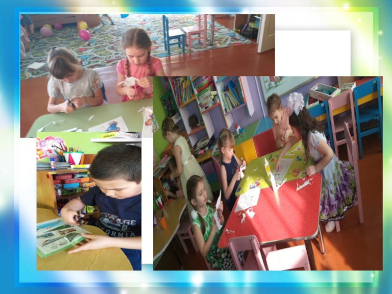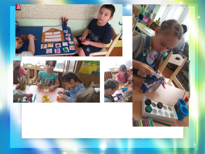 Материал использовали подручный картон, бумага, вырезки из журналов, что – то приносили ребята: мелкие игрушки из киндер-сюрпризов, ленточки, природный материал.
