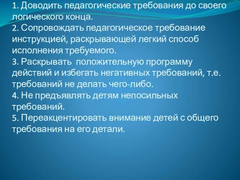 2. Сопровождать педагогическое требование инструкцией, раскрывающей легкий способ исполнения требуемого.
