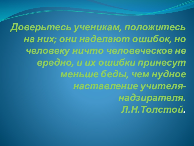 Слайд 13Доверьтесь ученикам, положитесь на них; они наделают ошибок, но человеку ничто