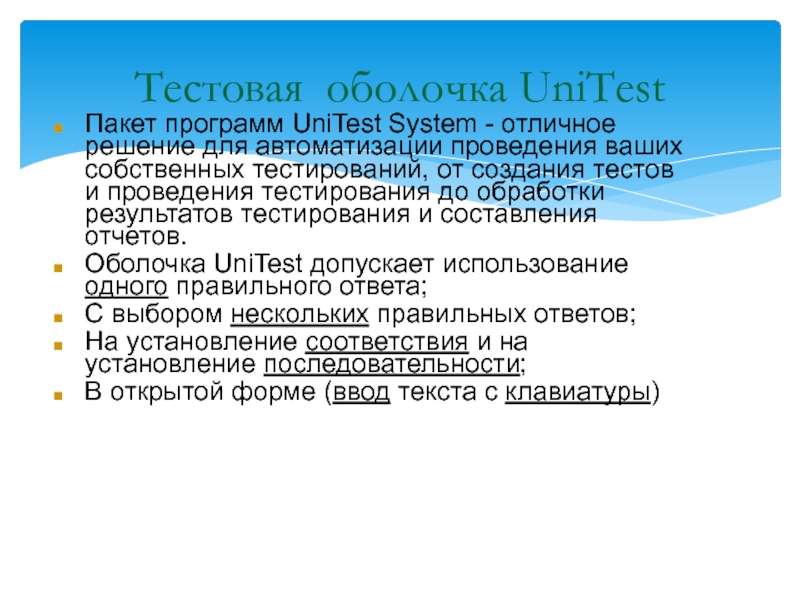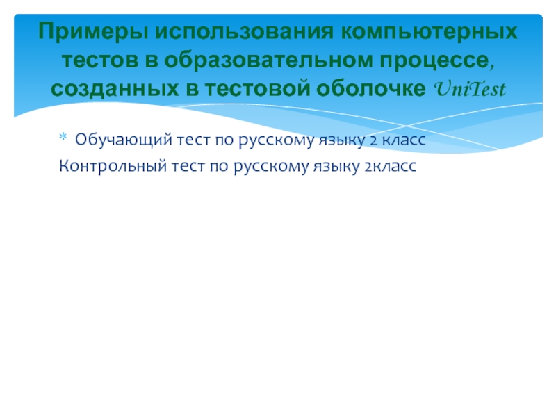 Примеры использования компьютерных тестов в образовательном процессе, созданных в тестовой оболочке UniTest
