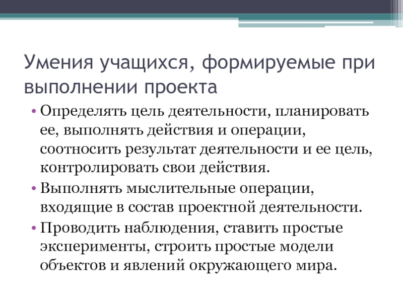 Слайд 12Умения учащихся, формируемые при выполнении проекта
