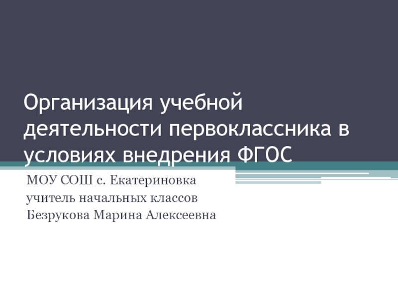 Слайд 1Организация учебной деятельности первоклассника в условиях внедрения ФГОС