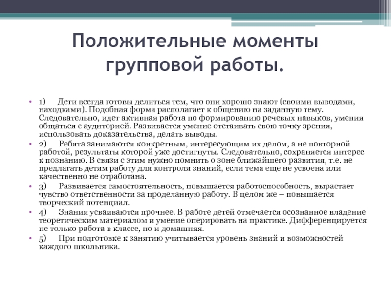 Слайд 10Положительные моменты групповой работы.