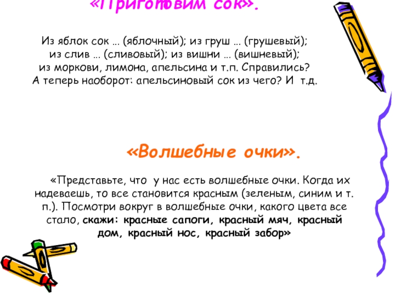 Из яблок сок … (яблочный); из груш … (грушевый);