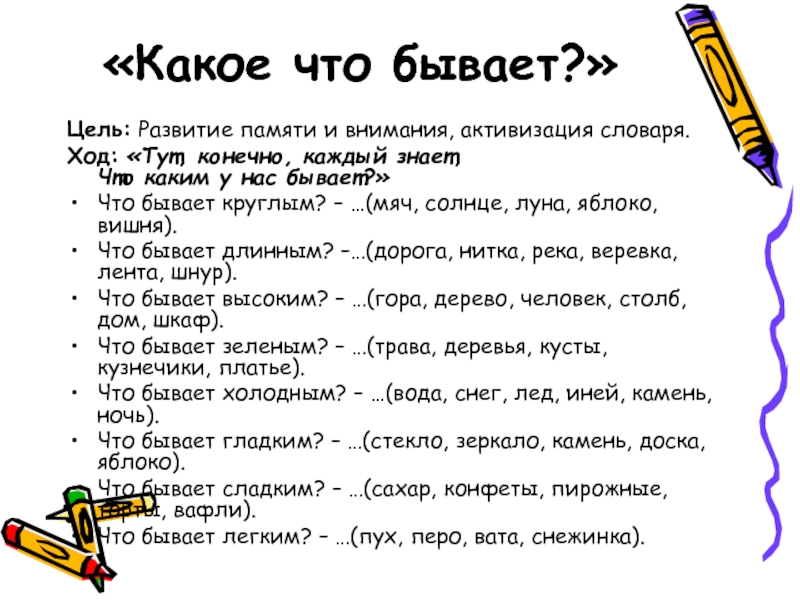Что бывает круглым? – …(мяч, солнце, луна, яблоко, вишня).