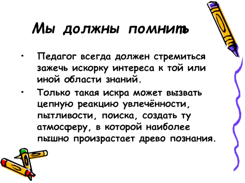Педагог всегда должен стремиться зажечь искорку интереса к