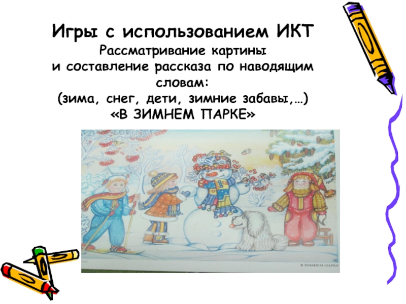 Слайд 29Игры с использованием ИКТ Рассматривание картины