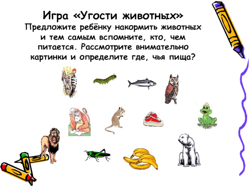Предложите ребёнку накормить животных и тем самым вспомните, кто,