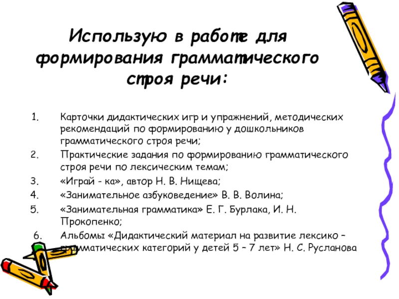 Слайд 38Использую в работе для формирования грамматического строя речи: