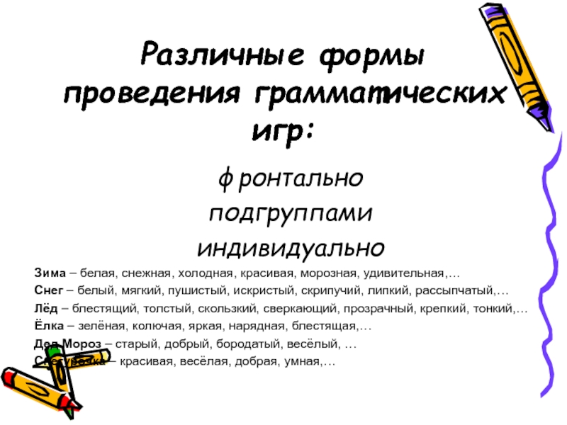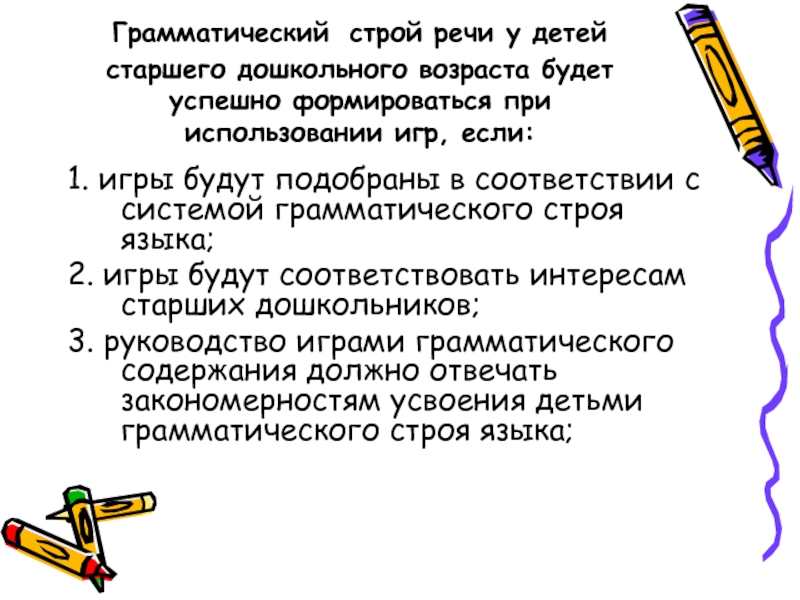 3. руководство играми грамматического содержания должно отвечать закономерностям усвоения детьми грамматического строя языка;