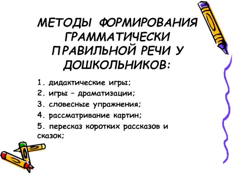 Слайд 11МЕТОДЫ ФОРМИРОВАНИЯ ГРАММАТИЧЕСКИ ПРАВИЛЬНОЙ РЕЧИ У ДОШКОЛЬНИКОВ: