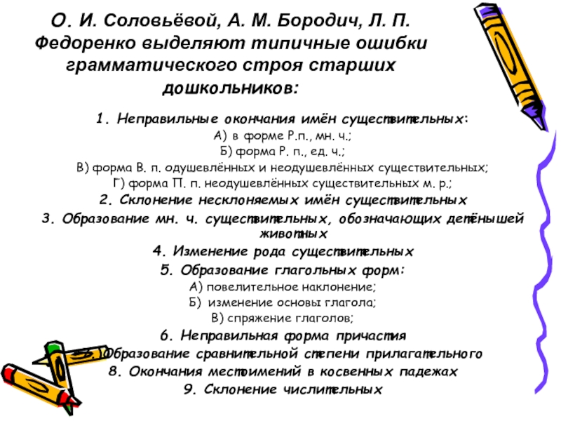 2. специальное обучение детей трудным грамматическим формам, направленное на предупреждение ошибок;