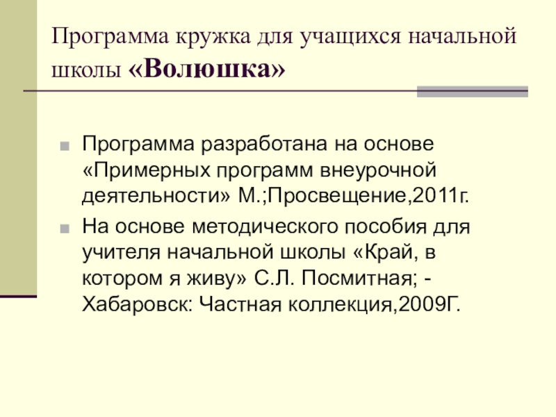 На основе методического пособия для учителя начальной школы «Край, в котором я живу» С.Л. Посмитная; -Хабаровск: Частная коллекция,2009Г.
