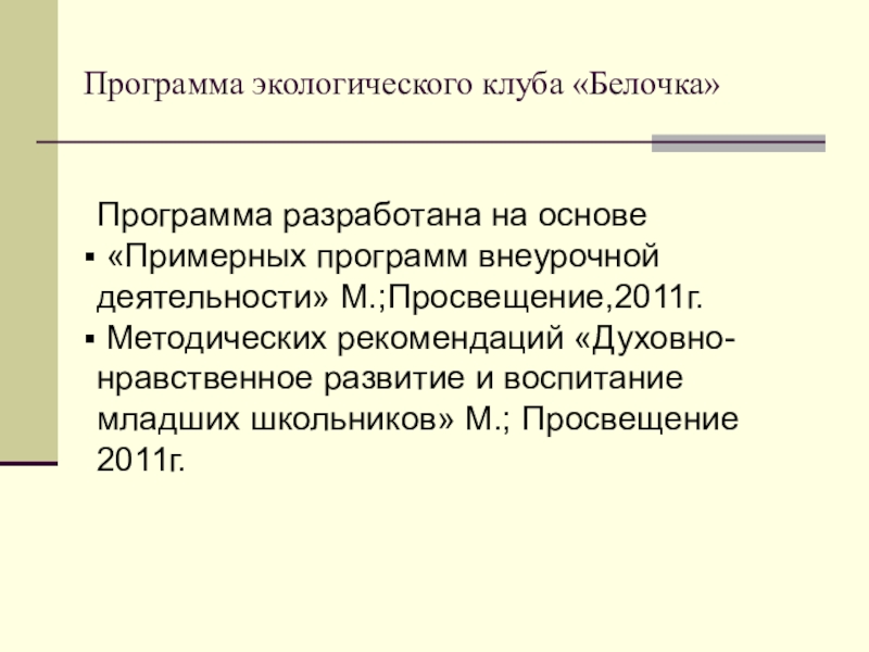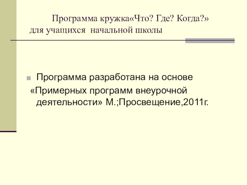 Программа разработана на основе «Примерных программ внеурочной деятельности» М.;Просвещение,2011г.