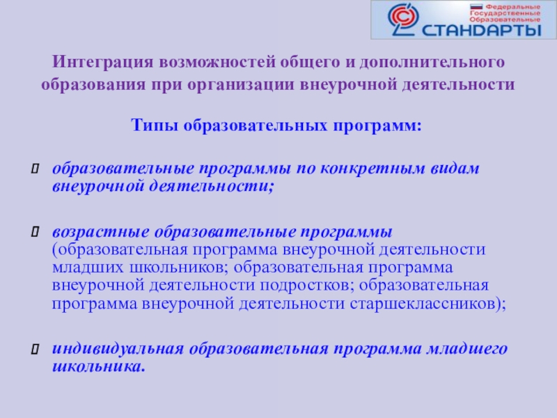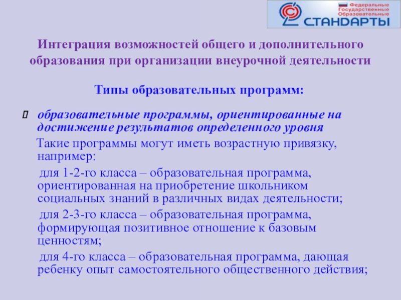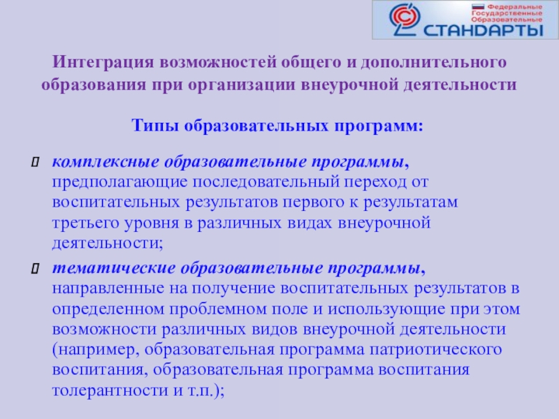 Типы образовательных программ: