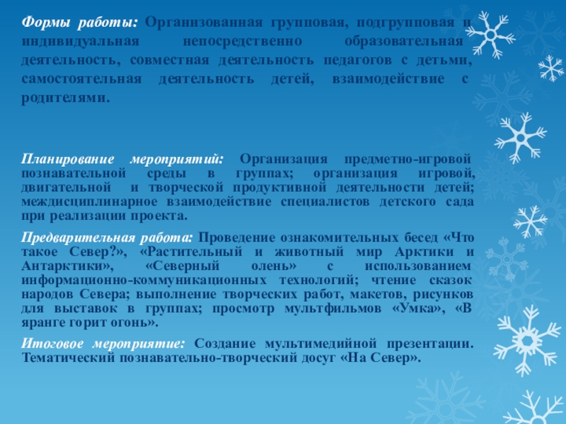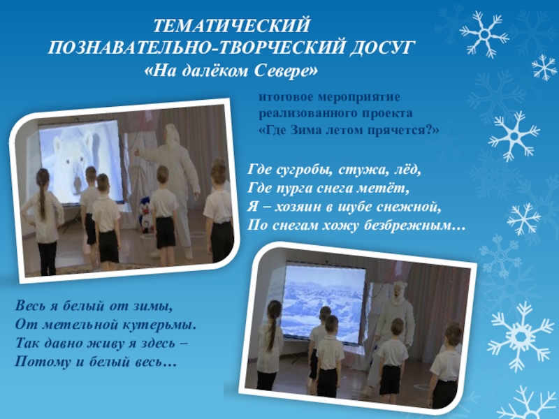 Итоговое мероприятие: Создание мультимедийной презентации. Тематический познавательно-творческий досуг «На Север».