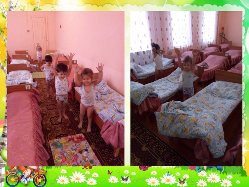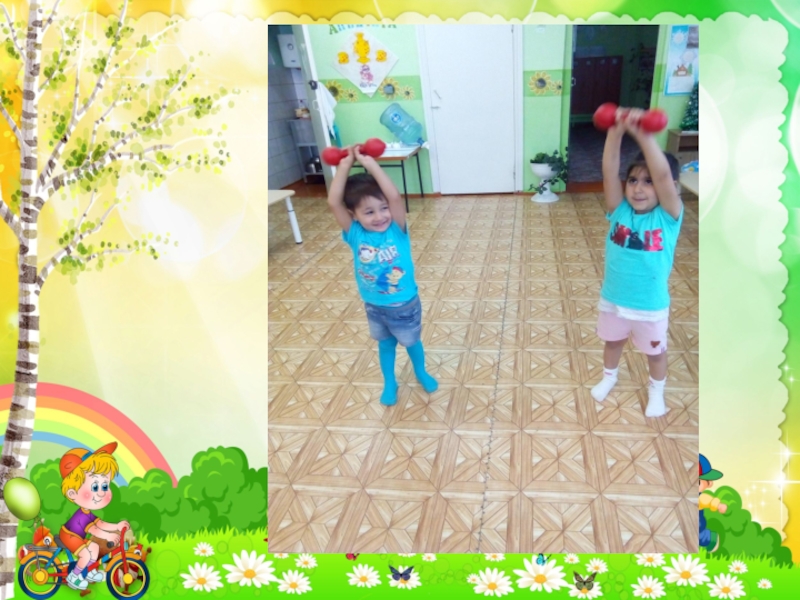 1. Утренняя гимнастика;2. Одежда в группе и на улице по погоде;3. Прогулки каждый день с подвижными играми;4.
