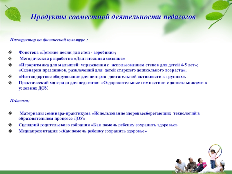 Повышение компетентности педагогов и родителей в вопросах здоровьесбережения и здоровьеобразования.