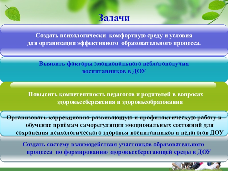 Создать систему взаимодействия участников образовательного процесса по формированию здоровьесберегающей среды в ДОУ