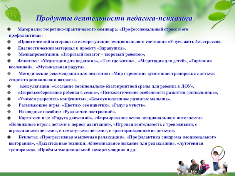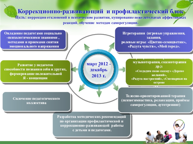 Организация коррекционно-развивающей, профилактической работы и овладение методами саморегуляции эмоциональных состояний воспитанников и педагогов ДОУ.