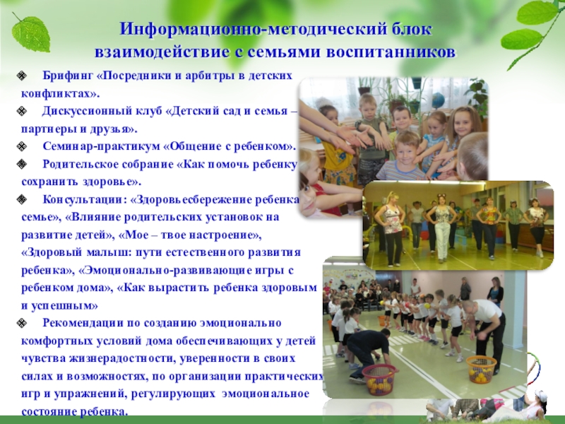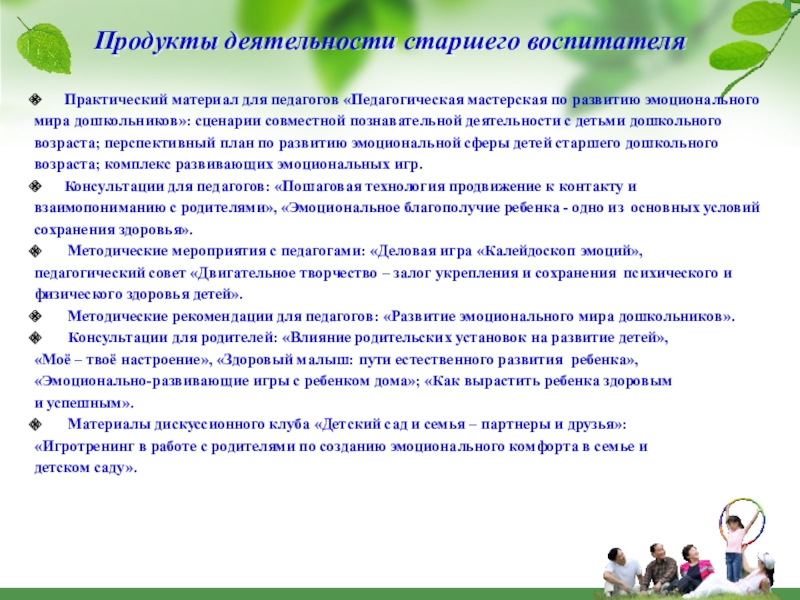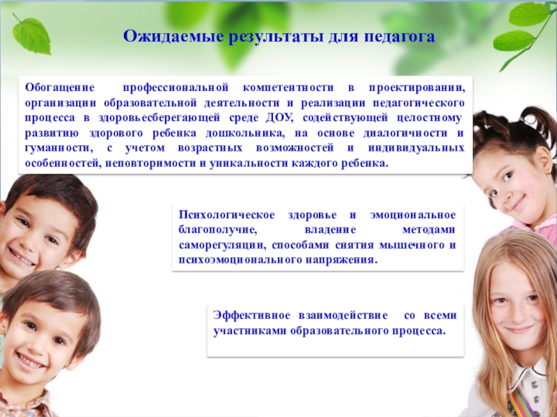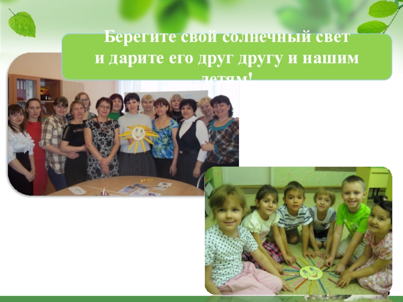 И если мы научим детей и будем создавать с самого раннего возраста условия для эмоционального благополучия, поддержания уверенности в своих силах, в своей значимости и ценности для нас, взрослых, научим ценить, беречь и укреплять своё здоровье, если мы будем личным примером в сохранении психического и физического здоровья, то только в этом случае можно надеяться, что будущие поколения будут здоровы и гармонично развиты не только личностно и интеллектуально, но и духовно и физически.
