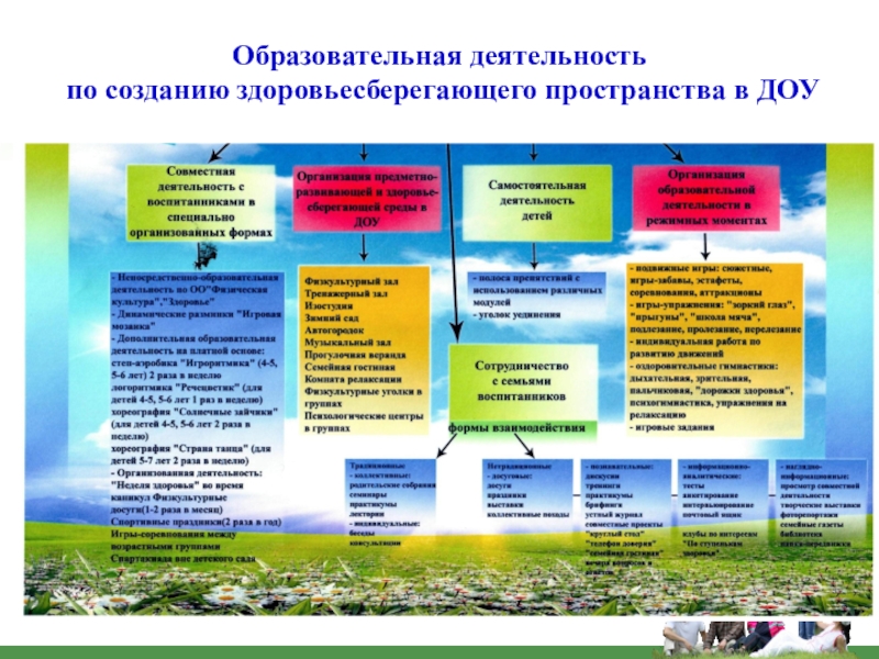 Создание системы взаимодействия участников образовательного процесса в формировании здоровьесберегающей среды ДОУ.