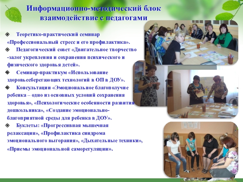 Организовать коррекционно-развивающую и профилактическую работу и обучение приёмам саморегуляции эмоциональных состояний для сохранения психологического здоровья воспитанников и педагогов ДОУ