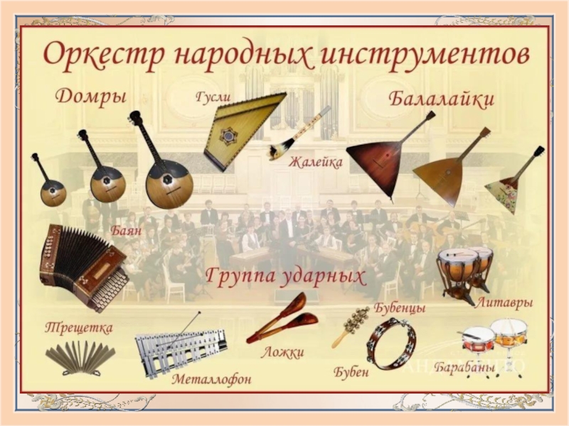 Презентация, доклад на тему Оркестр русских народных инструментов