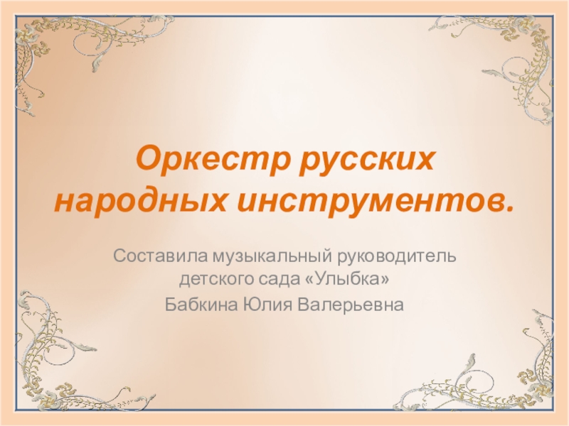 Оркестр русских народных инструментов.Составила музыкальный руководитель детского сада «Улыбка»Бабкина Юлия Валерьевна